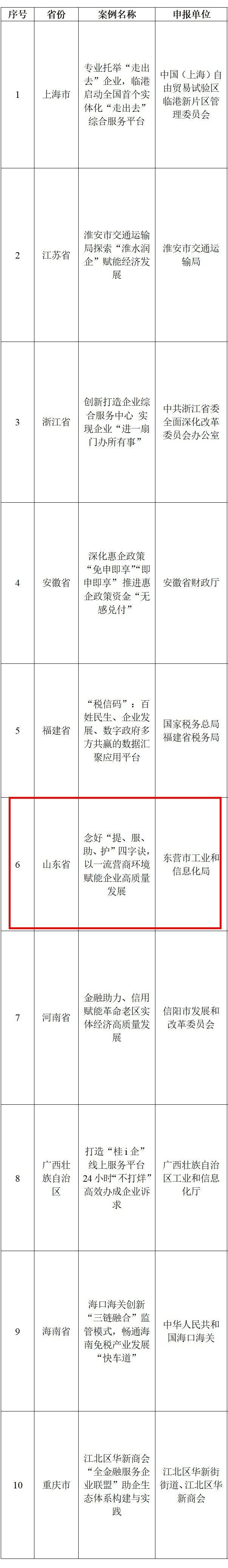 记者从工业和信息化部网站获悉,国务院减轻企业负担部际联席会议办公室近日组织开展“企业下沉”典型案例征集活动。经过地方推荐、专家评审、审查和公开公示,确定了前十名案件和剩余案件90件。山东东营市工业和信息化局“谋、送、帮、护”四字方略,用一流营商环境赋能企业高质量发展,被评选为十大案例之一。另选取枣庄、威海、日照、滨州、淄博、夏津、青岛等地区的7例为剩余病例。 Top sam100案例: 优秀案例:据介绍,入选案例主要包括统筹协调方面的优秀做法。通过劳动力要素保障、优化营商环境、组织产业供应链等,进一步降低制造业整体成本,减轻企业负担,切实提升服务企业水平。工信部要求,各地要进一步加强典型案例推广和经验交流,持续推动减税降费及建议落地实施,为促进经济平稳运行、坚定市场信心、优化营商发展环境发挥积极作用。 (巴利塔著名记者符玉婷) 上一篇:新华社·规划建议新亮点丨更多“美丽的房子”!