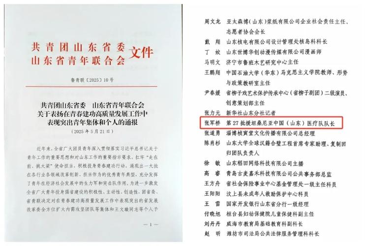 近日,共青团山东省委员会、山东省青联印发《关于表彰在青年高质量发展中做出突出贡献的青年群体和个人的通知》。中国(山东)第27批援坦医疗队队长、山东第二医科大学附属医院医师张俊桥被评为青年高质量发展突出表现青年。 01|率队奔赴坦桑尼亚 2024年1月5日,张俊桥作为中国(山东)第27批援坦桑尼亚医疗队队长,与来自全省各地的10名医疗队队员一起接受为期两年的医疗援助任务。坦桑尼亚位于非洲东部。张俊桥和他的队员们克服了气候、饮食、语言等困难,迅速投入到临床一线工作。他领导了该团队将培训当地医生掌握视频喉镜等先进技术,以降低麻醉风险。 02|获救孩子取名“齐鲁” 在众多获救患者中,一名8岁男孩患有先天性腹壁疝气,联系了中国医疗队。由于家庭贫困,无法承担医疗费用,男孩一度处于绝望的边缘,直到中国医疗队安排他在穆希比利国家医院接受手术并支付了所有费用。康复后,孩子的母亲请求医疗队给孩子取一个中文名字以示感谢。张俊桥被他的忠诚感动,给他取名“齐鲁”,取自山东古名,寓意这支来自儒家文化发源地的医疗团体与坦桑尼亚有着深厚的友谊。 “愿这个名字象征着中坦两国牢不可破的友谊。”张俊桥说。 03|继续开展义诊和科普活动公益活动。张俊桥虽然是医疗队中最年轻的成员,但作为队长,他还要负责医疗队医疗工作和日常生活的顺利进行。早在赴非洲援助之前,张俊桥就因发起“心跳行动”而在国内被广泛报道。闲暇之余,张俊桥在当地组织了一系列义诊活动,并为国内及中外机构组织了多次科普讲座。 04|结合当地生活 如今,在坦桑尼亚达累斯萨拉姆的街头,张俊桥过着当地人的生活。他和青少年一起踢足球,闲暇时跑马拉松,还骑车去7公里外的医院上班。他在该国工作了一年多,不仅拯救了生命,而且通过奉献和同情心建立了文化桥梁。他沉浸在当地生活中,学习斯瓦希里语短语,探访孤儿院,并通过献血来缓解慢性病的困扰。ic局部供血不足。 “要真正帮助他人,你必须成为社区的一部分,”他说。自费购买医疗物资和生活用品探访孤儿院 05|留下“不可替代的医疗团队” 在坦桑尼亚穆比利国家医院,张俊桥特意安排了时间给当地医生进行培训。可视喉镜气管插管和纤维支气管镜引导气管插管在我国早已流行,但当地条件有限尚未实施,导致麻醉诱导时插管困难。他知道,真正的帮助不仅仅依靠设备支持,还需要“授人以鱼”,真正提高当地医疗水平。张俊桥通过山东第二医科大学、山东第二医科大学附属医院向当地麻醉科捐款。一台价值10万多元的视频喉镜,逐步问世为当地医院“困难气道”插管制定了一条临床路径……并用多种方法指导当地医生认识和实践。 “以前,遇到‘困难气道’患者,我们只能听天由命。” “中国医生技术高超,毫无保留地教我们,从模拟实验室到手术室再到临床培训,他们一步一步教我们,能向中国医生学习,我们感到非常荣幸。”他率领医疗队,在坦桑尼亚留下了一支“无法带走的医疗队”。 2024年11月,坦桑尼亚总理卡西姆·马贾利瓦正式表彰中国医疗队十年来在医药卫生领域的杰出支持与合作。 4月12日,《中国日报》报道了该院援外医疗队队员张俊桥在谭市勇敢履行医生使命的感人事迹。以“给予坦桑尼亚技术待遇”为题,团结中非友谊。近年来,山东第二医科大学附属医院坚定开展援外、援藏、援疆等支援活动。张俊桥代表医院多名医护人员。这一认可也是对医院医疗救助工作和救助人员的肯定。医院将在保障潍坊及周边地区人民健康的同时,继续开展海外援助工作,展现山东第二医科大学附属医院医护人员的担当! 上一篇:大省引领经济