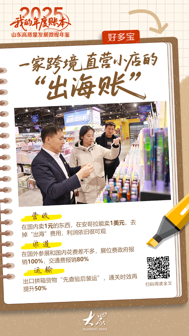 ■编者按 在中国现代化新征程中,每个人都是关键人物。经济社会高质量发展,离不开亿万蓬勃发展、稳定发展的企业主体。每一次努力都很重要,每一缕光芒都在闪耀。年末和年初的决算。大众日报·大众新闻客户端与山东地方党报、综合媒体中心合作,推出《2025·我的年度账本——山东高质量发展微年鉴》全媒体报道。记者深入跨境商铺、农场、工业园区、碳汇贸易公司等,开设了微型个人代表的年度账户。通过他们的真实收入和支出、选择和增长,展现了“十四五”最后一年山东社会经济结构的温度、稳定和变化。保持专注。来自塞尔从产品到销售的商业模式,好多宝于2025年在安哥拉开设了4家门店,成为跨境直营店的“海外账户”。 “昨天安哥拉店的销量是多少?”耿彦洲问道。 “四家店的总销售额超过3000万宽扎(安哥拉法定货币),折算人民币超过20万元。”工作人员回答道。 12月25日,山东好多宝供应链有限公司(以下简称“好多宝”)总经理耿彦洲和工作人员统计了前一日海外直营店的经营账目。 “我们在海外开直营店,是想把‘整店出口’模式的价格、渠道、运输账目都算清楚,为海外客户提供可靠、系统的解决方案,以达到更好的推广效果。”耿彦洲表示,外贸一直是公司发展的重点。今年,他们将重点开发非洲、东南亚、中东等新兴市场,这些市场出口的不仅仅是产品,还有商业模式。今年10月起,在安哥拉直营的4家海外店。每天收银台前都会排起长队。 1000宽扎在安哥拉可以卖掉,相当于1美元。“运输和报关,利润还是巨大的。‘整店出口’模式可以成功复制到海外,依靠的是临沂的小商品生产能力。好多宝安哥拉直营店的货架上,40%的产品是临沂制造的。”外国人想买的陶瓷产品,大部分都是罗庄区的企业生产的,五金制品多来自河东区,塑料制品多来自兰山区厂家。”耿彦洲表示,公司就近取货可以节省运输成本。缩短供货周期,降低“走出去”成本。耿彦洲计划在安哥拉开设10家门店。我们之所以专注非洲安哥拉市场,离不开临沂市政府部门的支持和指导。 “Rentto支持企业走出去,政府带我们去安哥拉参展。我们在那里做了充分的市场调查,发现临沂的小百货店很受欢迎。”谈起此次安哥拉之行,耿彦洲也粗略算了一笔:“平均每人一周的展会费用才4000多元,政府支付了4个标准展位的费用,并补贴了80%的往返机票,剩下的就是当地的交通、饮食、住宿等各种补贴。发帖后就会算出费用,和参加国内展会的费用差不多。”好多宝也积极参与参加在临沂举办的国际展览会。在今年10月举办的第三届临沂商城国际买家大会上,好多宝展出了近2万件产品,邀请了90余名国际买家,现场提供了从产品选型到报关合作的全流程服务。好多宝正准备在安哥拉开设第五家店。一个集装箱已抵达港口,其余集装箱将在两个月内陆续抵达。边发货边选址是好多宝在安哥拉开店尝试的新方式。 “‘整店出口’模式的特点是可以快速开店,我们在国内调配货源,货源到了就可以开店。耿彦洲说,通过海运将货物送到安哥拉需要三个月左右的时间,按照海运时效,每家店至少可以节省三个月的租金。”“越来越好,发货量不断增加,海运平均成本也在下降。”耿彦洲说,不仅如此,陆运成本也在下降。“TIR运输直达中亚,省去了港口卸货和重装的时间。”时效提高了30%左右,还节省了人工成本,避免了货损。每次运输至少可以节省20万元。”耿彦洲说,12月19日,拼箱货物出口“先验后船”监管模式在临沂正式实施。好多宝成为首家测试新模式的企业,通关时间提升50%以上。(大众日报记者王四清临沂融媒体记者石明星通讯员高静) 上一篇:媒体策划丨北纬37°的鲑鱼
